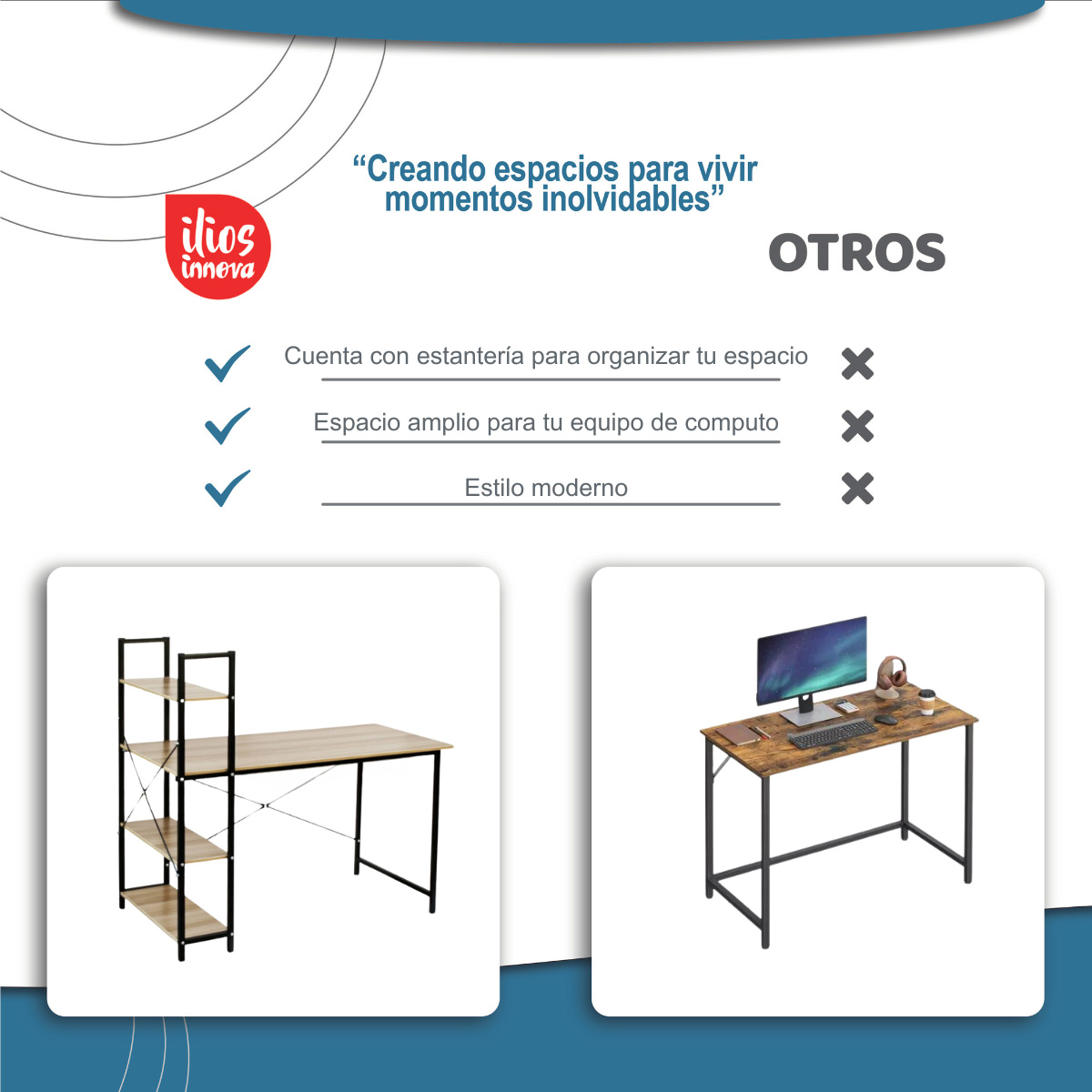 El escritorio gaming de Ilios Innova combina funcionalidad y estilo en un solo diseño. Fabricado con una estructura de metal duradera y una elegante parte superior laminada de madera ecológica de color carbón, es resistente y fácil de limpiar. Su amplio espacio permite acomodar un monitor, PC, computadora portátil, juegos, parlantes y más, brindando la máxima comodidad para tus sesiones de trabajo o gaming.
